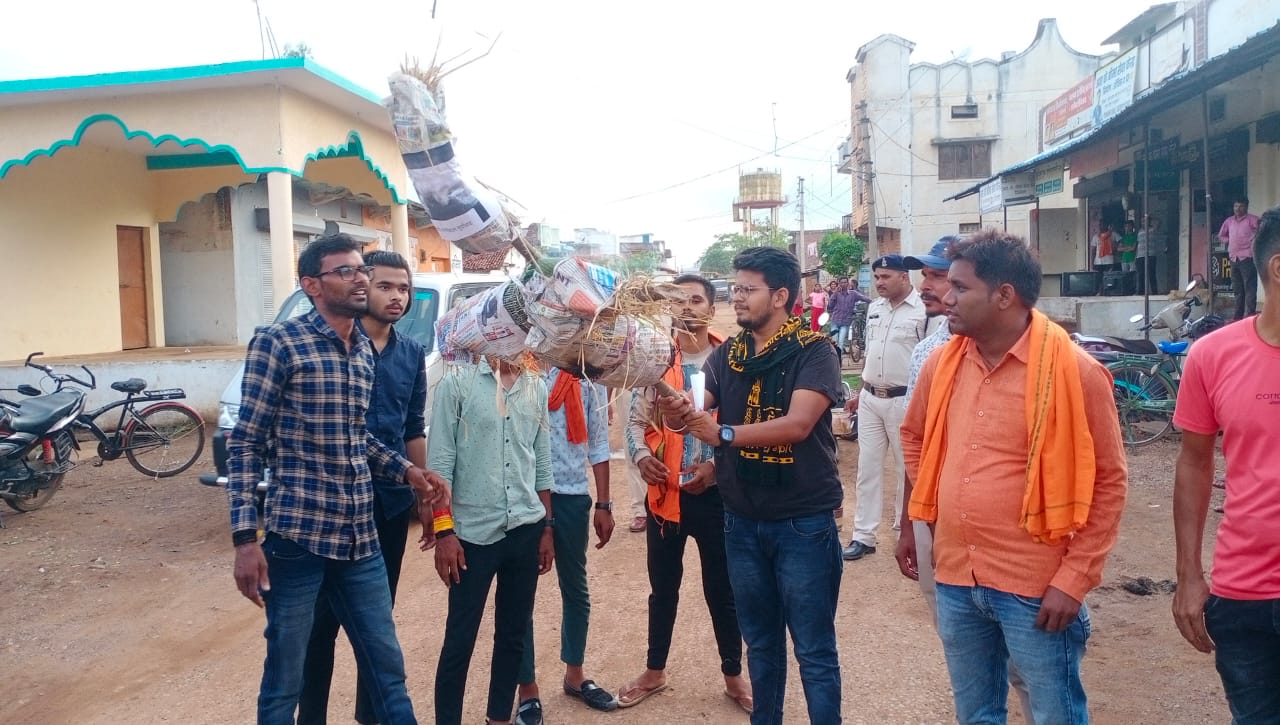 पुतला दहन भाजयुमो राजनंदगांव ग्रामीण मंडल द्वारा किया गया।
