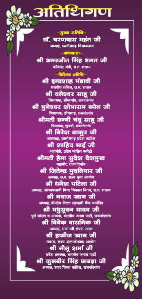 विधानसभा अध्यक्ष डॉ चरणदास महंत और राजनांदगांव के प्रभारी मंत्री अमरजीत सिंह भगत होंगे शामिल