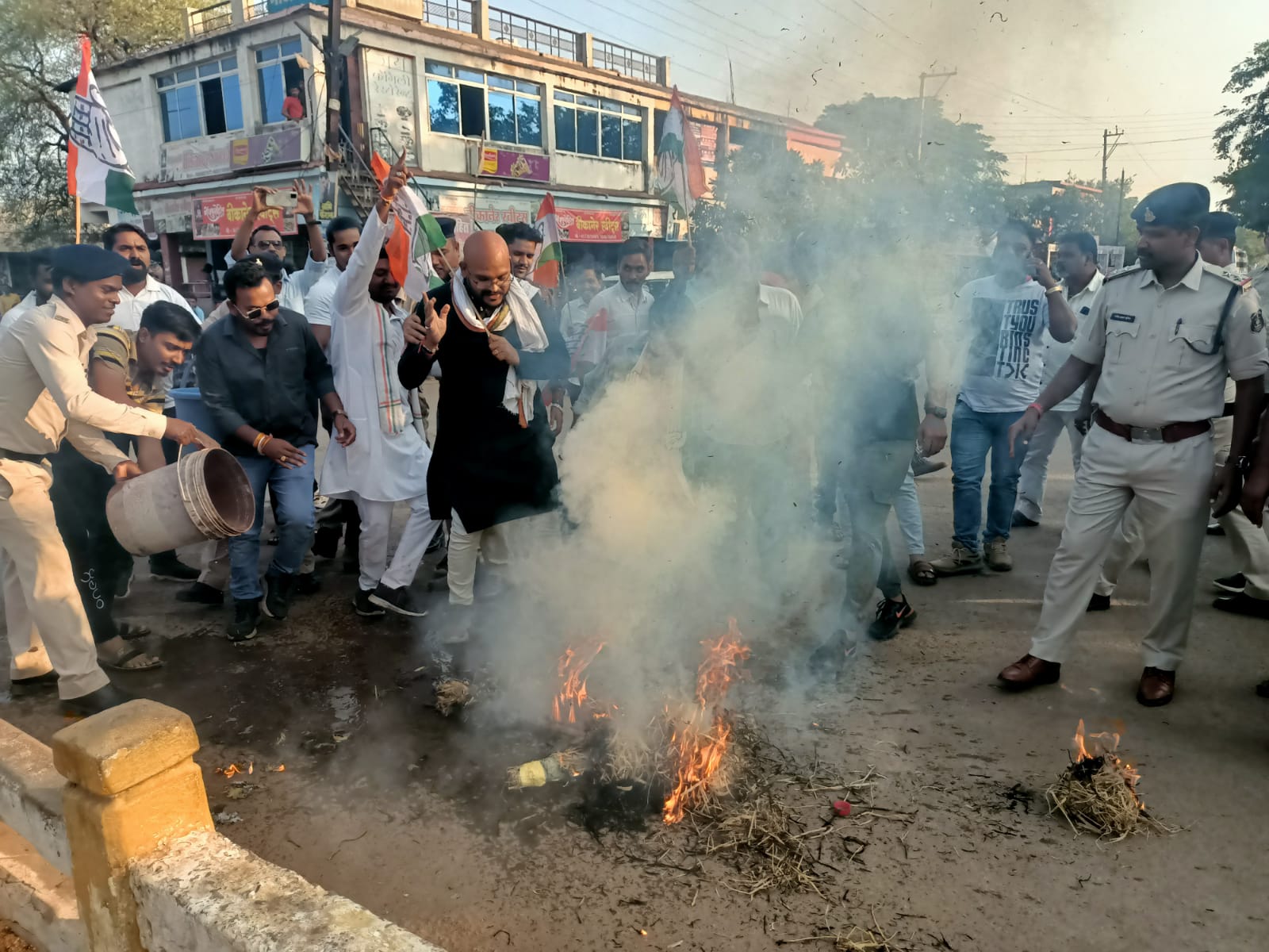 उदयपुर। छत्तीसगढ़ युवा कांग्रेस प्रभारी राष्ट्रीय महासचिव डॉ. पलक वर्मा सहप्रभारी राष्ट्रीय सचिव इक़बाल गरेवाल एवं प्रदेश अध्यक्ष आकाश शर्मा के निर्देशानुसार जिला अध्यक्ष गुलशन तिवारी के अगुवाई में भारतीय जनता पार्टी के प्रदेश सह-प्रभारी नितिन नवीन द्वारा छत्तीसगढ़ महतारी कि मूर्ति अनावरण एवं छत्तीसगढ़िया वाद के अपमान के विरोध में 3 नवंबर को कांग्रेस कार्यालय से रैली निकालकर जय स्तम्भ चौक छुईखदान में भाजपा सहप्रभारी नितिन नवीन का पुतला दहन किया गया।
